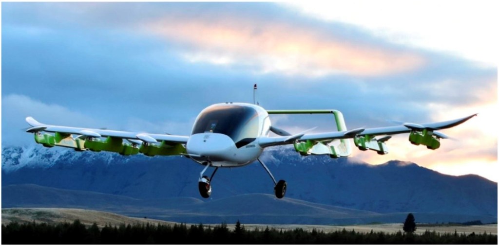 Kitty Hawk started flight testing of the Cora aircraft in California and New Zealand in 2017. The Cora is a two-seat autonomous aircraft with 12 lift propellers and a pusher prop.