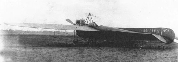 Second of two monoplanes built by Hungarian aviation pioneer Kolbányi Géza in 1912. A two-seater characterized by its very long vertical stabilizer stretching along the fuselage, the Kolbányi V monoplane was fatally crashed in October 1912, owing to a break of the wing structure, in which the pilot and sole occupant Takács Sándornak was killed.