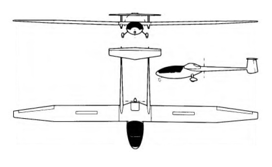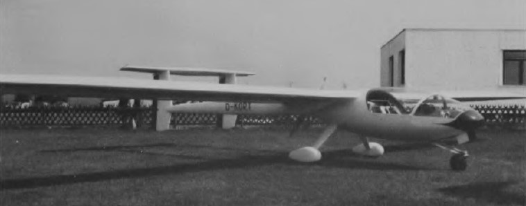 The power plant is a 65hp Limbach SL 1700EC1 air-cooled ‘flat four’ driving a Hoffman two-blade variable-pitch feathering propeller. The Kora is of all-wood construction, with cantilever high wings which have Schempp-Hirth air brakes in the upper surfaces. The pod-type fuselage nacelle has roomy side-by-side seating in a cockpit 47in wide, the canopy opening sideways to starboard. The twin tail booms end in twin fins and rudders which have the tailplane mounted on top of them. The fixed main undercarriage units on the second prototype consist of two spatted main wheels set on thin steelsprung legs cantilevered from the fuselage underside.