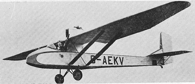 A further development was the single-seat, single engine Drone of 1935. A lightly laden high wing monoplane of 40 ft span, the Drone was devised by Charles Herbet Lowe-Wylde by fitting a motor-cycle engine to his sailplane. The idea was to give cheap training to pilots who had already gone solo. The pusher engine was mounted on top of the wing, behind the cockpit. Two were produced and two conversion were made.