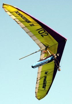 The 1995 Topless, for advanced pilots, is easy to fly and land with no surprises or bad habits. Some of the carbon fiber battens have broken but they’re easy to repair with kite tubing.