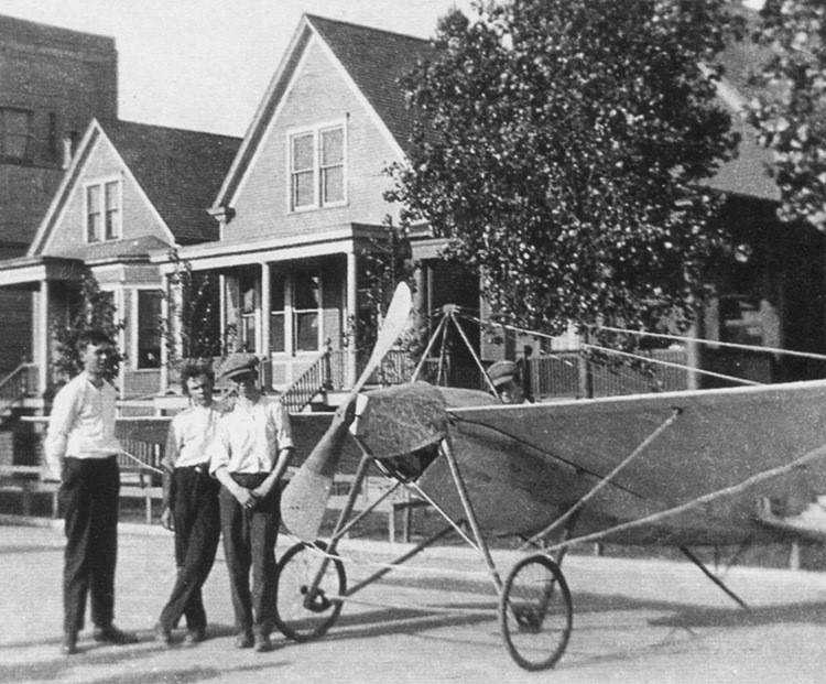 At age 17, Matty Laird’s first design would be a monoplane powered with an engine designed by Harry Wells. The two worked on their separate projects month after month in high school night classes. Matty’s airframe progressed, but Harry Wells was never able to devise a reliable valve mechanism for his engine. Thus Matty was left with an engineless airplane.