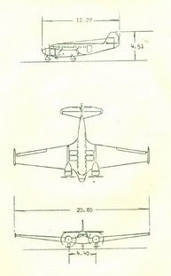 The aircraft was a twin-engine monoplane with a mid-wing monocoque fuselage built in duralumin that was capable of holding 12 people in 2 rows of 6 seats plus a bathroom lobby, with the option of 14 seats without the bathroom, plus two pilots. The fuselage was part of the wings through beams. Each wing had between the engine and the fuselage two compartments for luggage of 0.65 cubic meters each, the aircraft had two tanks of fuel of 200 liters each that fed to the Jacobs R-755 engines by gravity and pumps besides two auxiliary tanks located at the outer wing of 50 liters each.