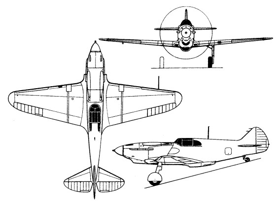 The LaGG-3 was essentially the series production version of the LaGG-1 with a revised outer wing incorporating fuel tanks, and an armament of one 20mm and two 7.62mm weapons. Fixed wing slats – later replaced by automatic slats – were introduced and balance weights were added on the elevators and rudder, but were later discarded in favour of statically and dynamically balanced surfaces. Weight was reduced as a result of a structural analysis. LaGG-3 deliveries commenced in the spring of 1941, initially with the M-105P engine, but, from late in the year, with the M-105PF of 1260hp at 800m.