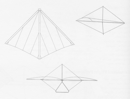 The kingpost and control bars have black powder baked-on epoxy, and saddles, Wingpost and cables are standard on the 19ft and 2 ft models. It was sold with the prone harness and knee hangers, carabiner, sail ties, cordura cover, and a copy of ‘Guide to Rogollo Flight, Basic’.