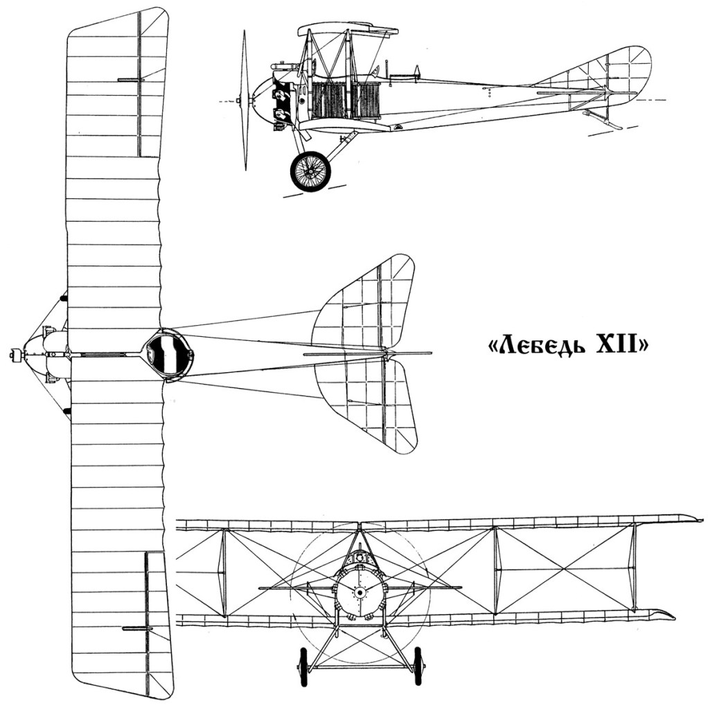 The Lebed XII was a Russian military reconnaissance aircraft produced during the First World War for the Imperial Russian Air Force. It was one of the few domestically designed aircraft to see production in Russia during the war, but was based on designs and techniques learned from Lebed’s rebuilding of captured German types. The fuselage was a plywood structure of rectangular cross-section with seating for the pilot and observer in tandem, open cockpits. The wings were built around a pine spar and covered in fabric, and the empennage (tail assembly) was of welded steel tube with fabric covering.