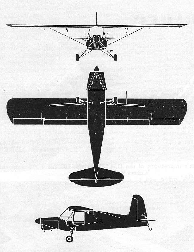 On the prototype several components, such as cowling panels, wheel discs, spinner and door sills, had been made of fibreglass. The fuselage is basically rectangular, rigid wood box built up on four longerons. At the sear is a post for the rudder.