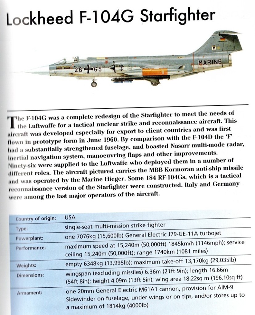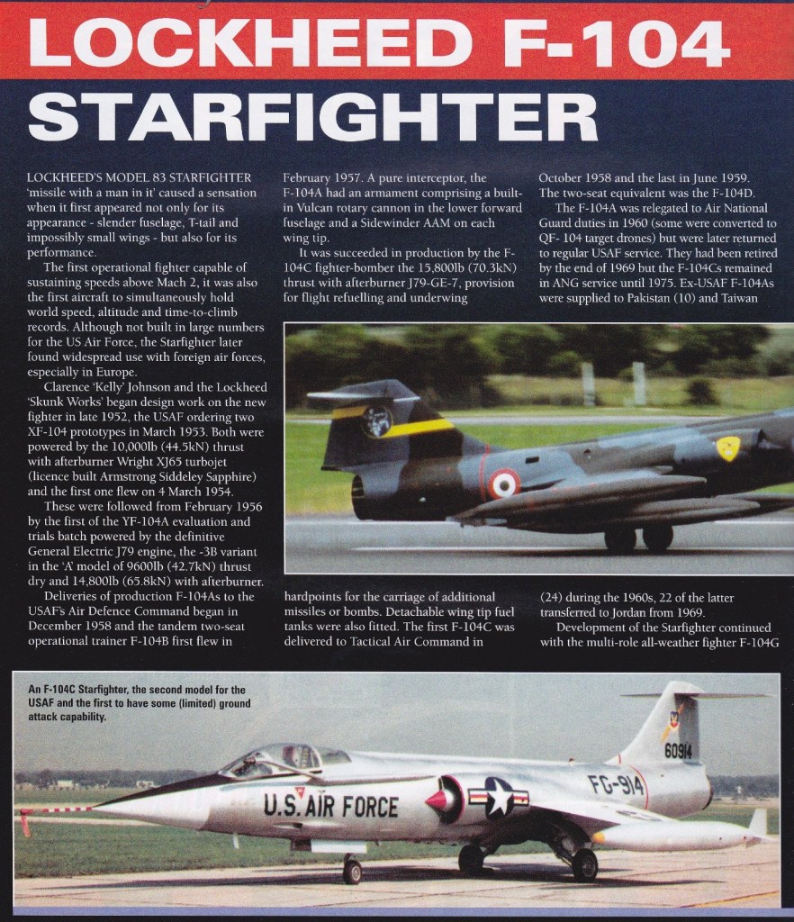 Lockheed F-104 Starfighter Article 08/02/202508/09/2025Terry Back to Lockheed F-104 Starfighter 1957 Share this: Click to share on X (Opens in new window) X Click to share on Facebook (Opens in new window) Facebook Like Loading... Related