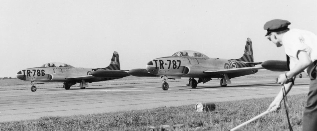 RAF EE Lightning, RCAF Lockheed CF-104 Starfighter, Fokker-built Belgian F-104G w/droptanks, USAF McDonnell F-4D Phantom, USAF NA F-100D Super Sabre, French AF Dassault Super Mystere, German AF Lockheed T-33A