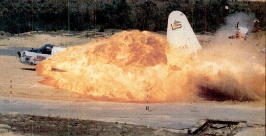 1977 FAA test of anti-misting agent in the fuel at Lakehurst Naval Air Station using a SP-2H Neptune.