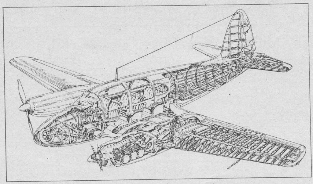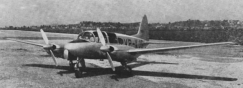 The cantilever low-wing has a NACA 2300 section and wooden single-spar covered by plywood, fitted with differential slotted ailerons and flaps. The fuselage is built in three sections with a detachable metal e cone and woo centre and rear with plywood skins. The centre section contains the cabin and baggage compartments. The wood tail section has trim tabs in the starboard elevator and rudder. The undercarriage is retractable with the fully swivelling nose wheel retracting backwards into the nacelles.
