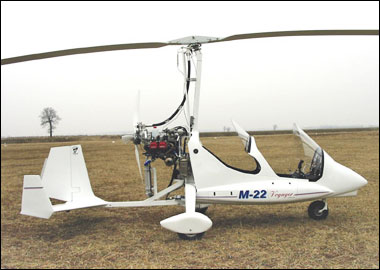Magni Gyro has announced the June, 2005 availability of the M-22 Voyager. Based on the M-16 Trainer model, it sports large baggage strakes on each side of the tandem enclosure. Baggage space includes available space under both seats. The M-22 Voyager eliminates the rear seat flight and engine controls to allow full utilization of available spaces for baggage. (rear controls cannot be added to the M-22. The M-16 is not adaptable to M-22 modifications.)
