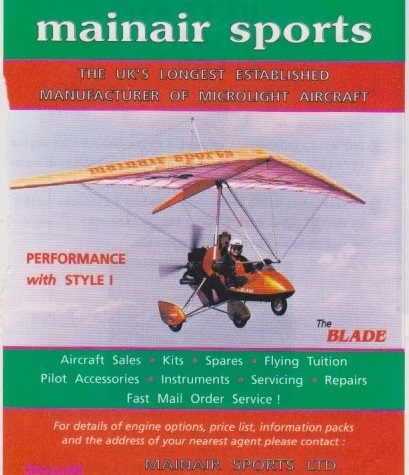 Mainair marketed the Blade tandem two-seat flex-wing microlight in assembled form to BCAR S.