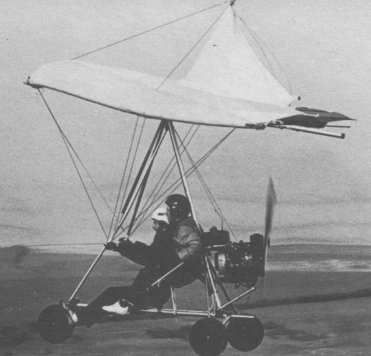 The Mainair/ Southdown Sailwings Puma MS is a tandem two seat single engined flex wing aircraft with weight shift control. Rogallo wing with fin. Pilot suspended below wing in trike unit, using bar to control pitch and yaw/roll by altering relative positions of trike unit and wing. Wing braced from above by kingpost and cables, from below by cables; floating cross tube construction with >75% double surface enclosing cross tube; pre-formed ribs. Undercarriage has three wheels in tricycle formation; no suspension on any wheels. Push right go left nosewheel steering independent from yaw control. Brake on nosewheel. Aluminium tube trike unit, with optional pod. Engine mounted below wing driving pusher propeller. All airframe tubing is bright anodised drawn seamless aluminium to British HT30TF specification. All bolts are aircraft quality AN series.