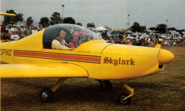 Design of the all metal, T tail, side by side two place Skylark began in January 1999, with the first flight on 10 March 2000. After the first flight, all that was required was a change to the incidence on the horizontal tail.