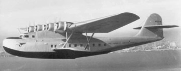First flying in 1934, the four engine Martin Model 130 flying boat entered service on 21 October 1936 with Pan American Airways on the San Francisco Manila air route in 1935. The Martin Clipper carried 10 passengers on overseas flights with a range of 3,200 miles. The M-130 had a cruising speed of 163 mph, weighed 53,000 pounds when fully loaded, and a wingspan of 130 feet.