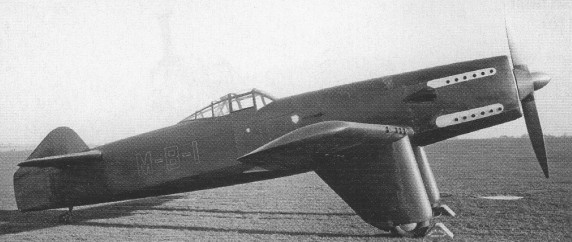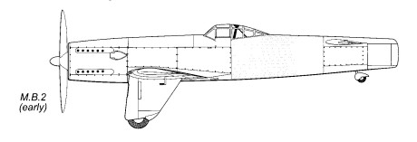 Conceived for manufacture in large numbers by semi¬skilled workers at low cost, the M.B.2 employed a steel-tube structure with fabric skinning, and carried an armament of eight 0.303-in (7,7-mm) Browning guns in the wings. The depth of the fuselage was virtually constant from nose to tail and vertical tail surfaces were eliminated, the rudder being hinged to the sternpost behind the elevators.