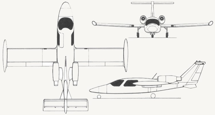 The TwinJet was designed in anticipation of the FJX-2 engine, which was being developed under the General Aviation Propulsion program. The FJX-2 was going to be a new generation turbofan engine producing 700-800 pounds of thrust.