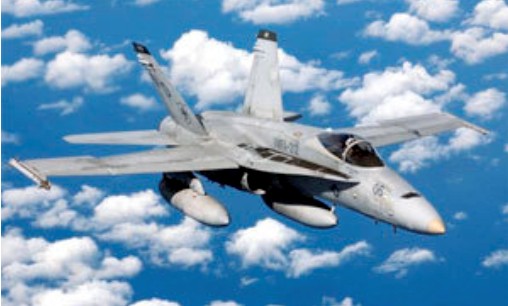 The F/A-18 has a digital fly-by-wire flight control system, the cockpit equipped with three multi function displays. The entire avionics suite is digital. The F-18 is powered by two 71 2kN General Electric F404 reheated turbofans, and equipment includes a Hughes APG-65 radar with air-to-air and air-to-surface modes giving intercept and attack capabilities, a Ferranti/Bendix headup display, Kaiser multifunction displays, and Litton INS. Other externally carried sensors include laser tracker and Flir pods. As a carrier-capable platform, the F/A-18 maintains folding wings. The Hornet is capable of air-to-air refuelling.