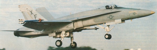 Test¬ing of a reconnaissance version, the US Navy F-18(R) continued. The nose-mounted 20mm rotary cannon was replaced by a sensor pallet with panoramic camera and infrared linscan. The aircraft can be reconfigured overnight for strike missions.