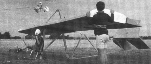 The glider consists of a simple open wooden frame fuselage with doped fabric covered section at rear, fabric covered wooden framed wing of constant cord, fabric covered wooden framed tailplane, elevators and rudder.