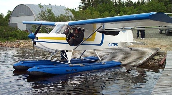 Being designed in Ontario, Canada, operation on floats and skis were a prime concern from day one. The first Merlin off the production line was fitted with Full Lotus amphibious floats. Each kit since has float-mounting plates welded to the airframe, making every aircraft easily adaptable to floats. In winter, the floats can easily be replaced by skis. These fit directly onto the existing axle tubes. Cruise speeds observed on skis are the same as on wheels-85 mph with the standard 68″ ground adjustable two-blade prop.