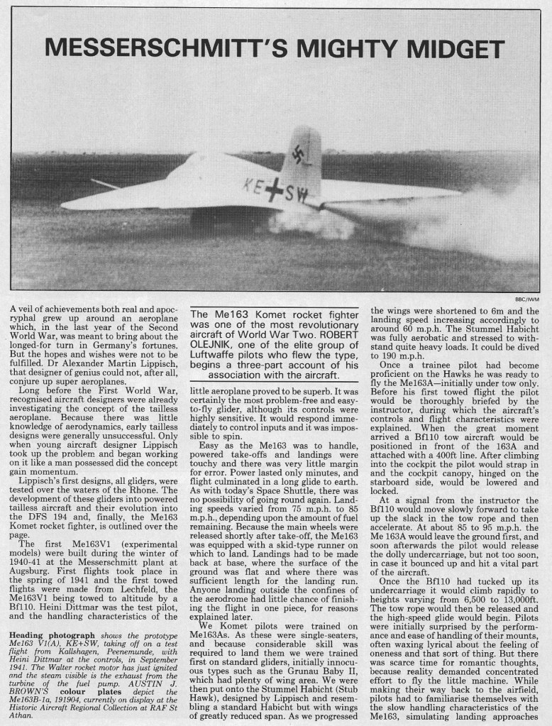 Messerschmitt Me 163 Komet Article 16/02/202513/11/2025Terry Back to Messerschmitt Me 163 Komet Share this: Click to share on X (Opens in new window) X Click to share on Facebook (Opens in new window) Facebook Like Loading... Related