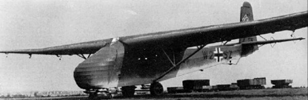 The Messerschmitt Me 321 spanned 54.68 m (180 ft), and was intended to ferry into combat 22.5 tonnes (22 tons) of equipment or a company of soldiers complete with 88 mm flak gun or tracked vehicle.