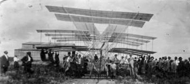 This machine was created, promoted, and built by Ralph Metcalf, a farmer and carpenter from Driscoll, Valley City, North Dakota, and founder of the Metcalf Multiplane Company. He wanted to design an airplane that could take off and land from either land or water. The main body looked like a slender fishing boat with a curved prow, ready to take off or land on a lake, yet with attached wheels for alighting on land. With about twenty wings arrayed in five layers, the machine looked like a “huge bird with wings outstretched”. It had a “double propeller system” with “two fans moving in opposite directions”, powered by a six-cylinder engine. The corporation planned to open an aircraft factory in Minneapolis once the plane had proven its flying capabilities. Much time passed from the incorporation of the company in 1910 until the full-sized aircraft was ready for a test flight in the summer of 1913. Aviator Metcalf steered his Multiplane out of his large Granger Hill workshop to the runway. Alas, it refused to leave the ground. Mr. Metcalf promised the disappointed multitude that he would revamp the aircraft for another trial. Unfortunately, his health failed him and he died in 1918 after several operations.