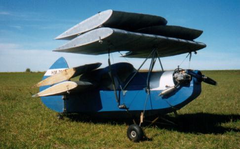 These tandem wing aircraft feature a large speed range, stall resistant, and spin proof. Both wings lift and being small size, minimal space is needed to build. Landing gear arrangement: tail dragger or tri-gear.