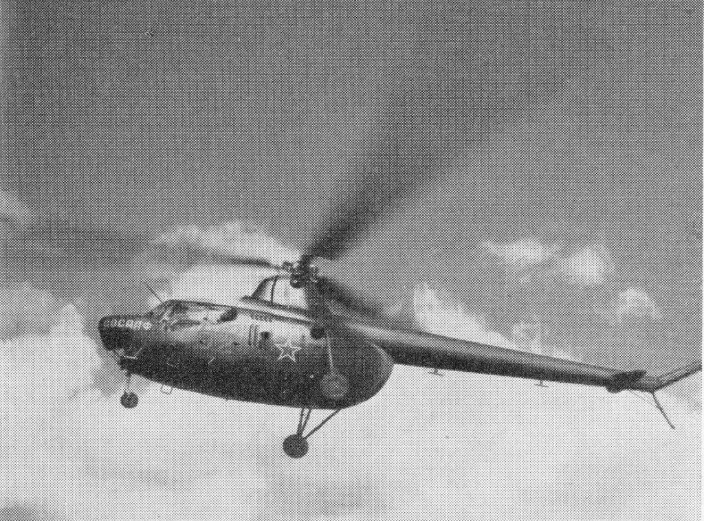 Designed to meet a requirement for a three seat communications machine which was issued in late 1947 and originally designated GM-1 (Gelikopter Mil, or Mil helicopter), the Mi-1 first of three prototypes was completed and flown in September 1948 piloted by M.K. Baikalov (ex-Bratukhin).