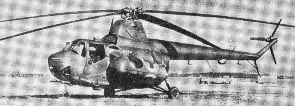 Other variants include the Mi-1MRK reconnaissance and fire adjusting helicopter of 1960, Mi-1MG (Mi-1G) helicopter with float-type gear, SM-1/300 experimental helicopter with additional wing of 1971, and Mi-1M experimental helicopter with additional servo-tab of 1959.