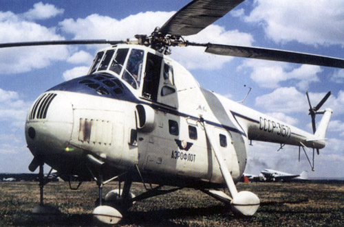 Basic military version with underfuselage gondola for navigator. Production said to have started in 1952. Civil freight version is generally similar, with double clamshell rear-loading doors. Soviet films of military exercises, released in 1968, showed a close support version of the Mi-4, armed with a gun in the front of the underfuselage nacelle and air-to-surface rockets.