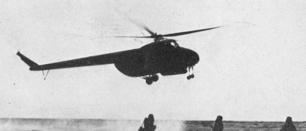 Soviet Army armed helicopter with two TRS-132 rocket pods fitted, or two TRS-132 rocket pods fitted, or six KARS-57 rocket pods fitted, 1960, or with eight UB-16-57 rocket pods with S-5K rockets, 1965