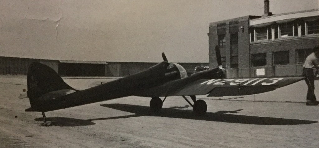 The “Belly Flopper” was built by Irven Miller of Milwaukee about 1953. Flown in the prone position, it has a top speed of 150 mph, powered by two 40 hp Continentals.