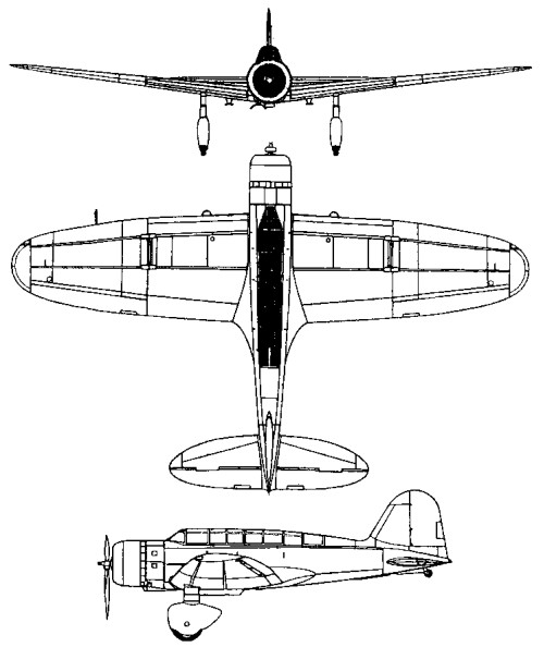 A three-seater, it had a long glazed crew canopy and was distinguished easily from its Nakajima B5N rival by having fixed cantilever landing gear with spat-type wheel fairings. The wings outboard of the landing gear could be folded upwards for carrier stowage.