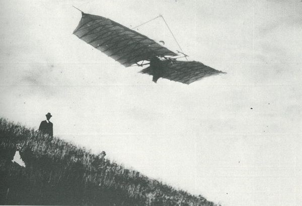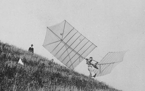 One of the gliders built by Charles Proteus Steinmetz – the “Wizard of Schenectady” – and others in 1894. While working for General Electric at Schenectady, N.Y., Steinmetz organized a band of fellow flying machine enthusiasts into the Mohawk Aerial Navigation Company, and over the summer of 1894 built and tested a man-carrying kite and two true gliders. None were particularly successful.