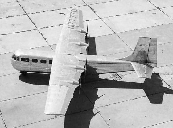 The 1949 Monsted Vincent Starflight featured four 85 horsepower Continental C85s driving two position pusher props. It had room for a pilot, four passengers. Gross weight was 5,000 pounds with a 130 knot cruise and 1,050 nautical mile range. It was built in New Orleans.