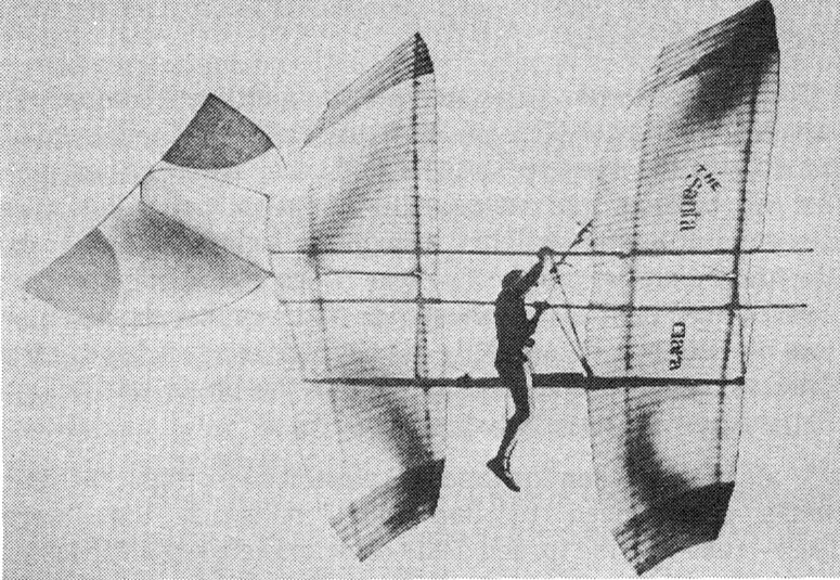 John J Montgomery, a science teacher at Santa Clara College, in California, experimented with gliders as early as 1883. Montgomery’s 1883 glider had a short, 23 foot wing span with a moveable horizontal tail. A keel-like bar (longeron) was suspended three feet below the wing longerons. The pilot ran to launch the ship by holding the upper bars, and once in flight he straddled the centre bar. He could then swing his body from side to side for lateral control and manipulate the horizontal elevator plane for lift. The craft is reported to have flown consistently well.