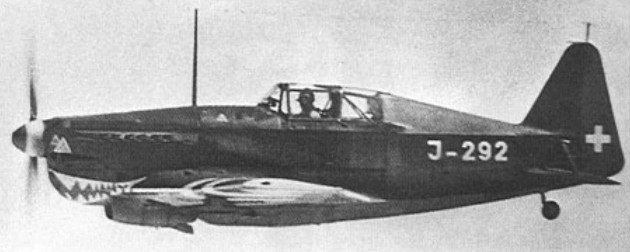 Prior to the Franco-German Armistice, the M.S.412, an improved version of the M.S.406, was under development primarily to fulfil a Swiss requirement. As an interim development aircraft, the twelfth pre-series M.S.405 had been fitted with the more powerful Hispano-Suiza 12Y45 engine and flown as the M.S.411, but a prototype of the M.S.412 with the still more powerful HS 12Y51 engine was not completed in France, the programme continuing in Switzerland as the D-3801. Flown for the first time in October 1940, the D-3801 had an HS 12Y51 rated at 1,050hp for take-off, a fixed radiator bath similar to that developed for the M.S.410 and the same armament as that of the D-3800. Although protracted teething troubles were suffered by the Saurer-built HS 12Y51 engine, series production of the D-3801 was undertaken by the Eidgenossisches Flugzeugwerke, the Dornier-Werke AG (Doflug) and SWS, deliveries commencing in 1941 and continuing until 1945, and a total of 207 being manufactured. These were augmented by a further 17 built in 1947-48 from spare assemblies remaining from the main production run. After withdrawal from first-line service, some D-3801s remained in use as advanced trainers and target- tugs until 1959.