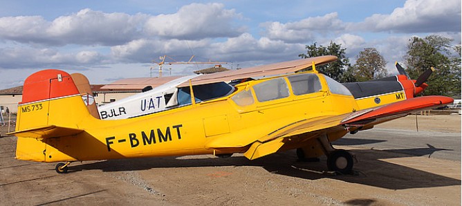 Two M.S.732 prototypes were flight tested in early 1951, each of them powered by a Potez 6D.30 engine and having the previous cantilever fixed landing gear replaced by a new design in which the main units retracted. The first example of the definitive version flew on 16 April 1951 as the M.S.733.01; five pre-production aircraft followed and series aircraft totalled 200; 40 for the French navy, 15 for Cambodia, and the balance for service with the Armee de I’Air as the Alcyon, 70 of them being fitted with machine-gun armament for use as gunnery trainers. In 1956 some of the gunnery trainers were converted for counter-insurgency duties, with machine-gun and anti-personnel bomb armament, for use against the nationalist rebels in Algeria. These aircraft were redesignated M.S.733A, of which a number were sold later to Morocco.