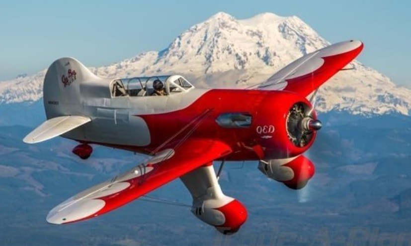 In 2002, aircraft builder Jim Moss set out to recreate the Gee Bee QED. Starting with the basic original plans, Moss’ recreation incorporated several modifications including wider landing gear, lengthened wings, a 20% larger vertical fin, and the installation of a 1425 hp. Wright R-1820 engine which replaced the original 650 hp. P&W R-1690.