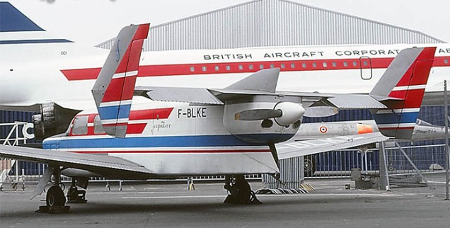 The second prototype, second constructed by Sud-Aviation, was of a more powerful and slightly larger variant designated the model 360-6; it first flew on 25 May 1965. This model had a choice of engines, either 290 hp (216 kW) Lycoming IO-540 six cylinder engines driving constant speed, three-bladed propellers, or 310 hp (231 kW) Lycoming TIO-541 engines. The span was increased by 0.37 m (15 in) and length by 0.64 m (25 in). The increased length allowed seats for 6-7, with two rows of two single seats and a bench seat at the rear that could accommodate 2 or 3. The cabin was sound-proofed and air conditioned and could be pressurised. Access was via a forward starboard side door. There was baggage space behind the cabin with its own external door. The sole 360-6 was registered as F-WLKY.