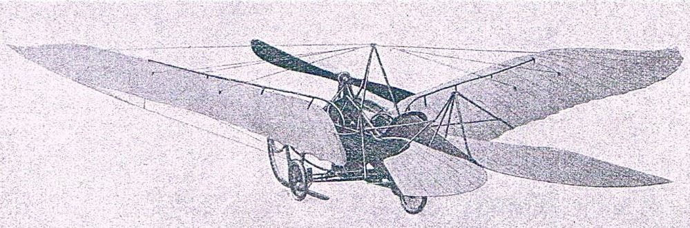 “Sport Eindecker ohne Seitensteuer” (sport monoplane without vertical tail plane), built by Bernard Mrozinski (of Polish birth), Berlin-Wilmersdorf. It flew in 1912.