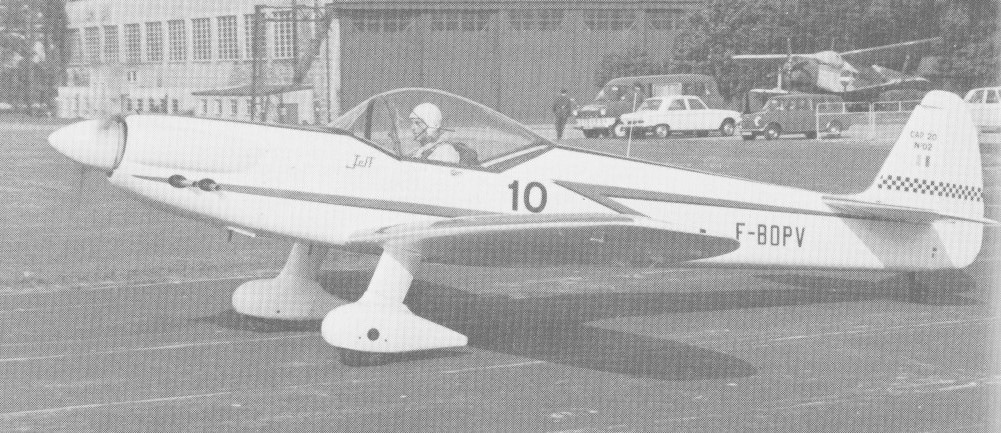 The CAP 20A is a single seat derivative of the CAP 10 with a no dihedral wing and lengthened landing gear.