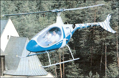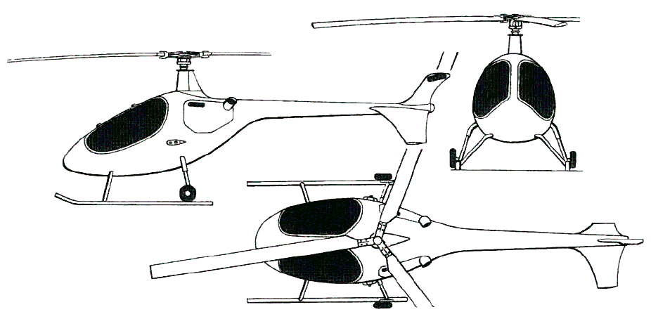 Flying controls were conventional cyclic and collective, with a ducted air anti-torque system. The structure is mainly composites, including the rotor blades. Some aluminium is in the fuselage, otherwise it is a double-curvature monocoque sandwich, with a laminated, vacuum-formed elastomeric rotor head. The landing gear is a tubular twin-skid gear with ground handling wheels. Inflatable permanent or emergency floats are optional.