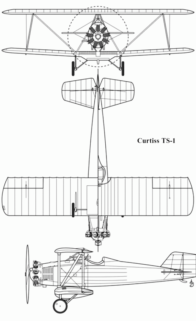 The NAF provided Curtiss with the plans to build the aircraft, and the result, designated TS-1, arrived at Anacostia on May 9, 1922. The TS-1 from Curtiss was delivered with wheels, so the NAF also designed wooden floats to enable their use on vessels other than aircraft carriers. Testing went well, and in late 1922 the Navy ordered 34 planes from Curtiss, with the first arriving on board the USS Langley (CV-1) in December. The NAF built another five themselves, as a test of relative costs, as well as four more used to experiment with water-cooled inline engines.