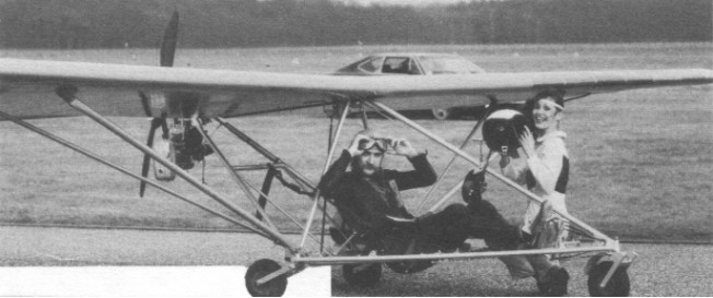 Single seat single engined high wing mono¬plane with conventional three axis control. Wing has unswept leading edge, swept for¬ward trailing edge on outboard half of span, and tapering chord; conventional tail. Pitch control by elevator on tail; yaw control by fin mounted rudder; roll control by half span ailerons; control inputs through stick for pitch/roll and pedals for yaw. Wing braced from below by struts; wing profile NACA 4415; double surface. Undercarriage has three wheels in tricycle formation with addi¬tional tailskid; no suspension on nosewheel and rubber suspension on main wheels. Push right go right nosewheel steering con¬nected to yaw control. Brakes on main wheels. Aluminium tube framework with optional pod. Engine mounted below wing driving pusher propeller.