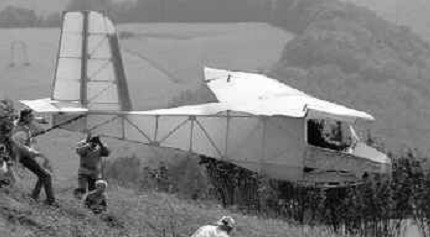 The ULF-l is a German design of classic wood and fabric by Dieter Reich and Heiner Neumann. It resembles some of the old designs like the Grunau Baby, but has an empty weight of only 100 pounds. It first flew in November 1977 and has made many excellent flights. Approximately 140 plan sets have been sold and about 40 aircraft are under construction. Plans are available from Dieter Reich. Cost of the plans is DM460.00 (about $266 US as of June 22, 1997). The plans are very detailed and have received an airworthiness certificate from the German authorities. The best L/D is 16-18:1 and the minimum sink rate is about 160 fpm. The ULF-1 climbs well and handles well. The structure is every bit as complicated as the Carbon Dragon, but results in a good foot launcher when complete.
