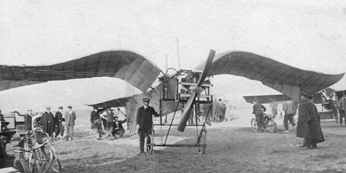 The aeroplane is reported to performed “careful hops” on the Biarritz airfield, France, in 1910.